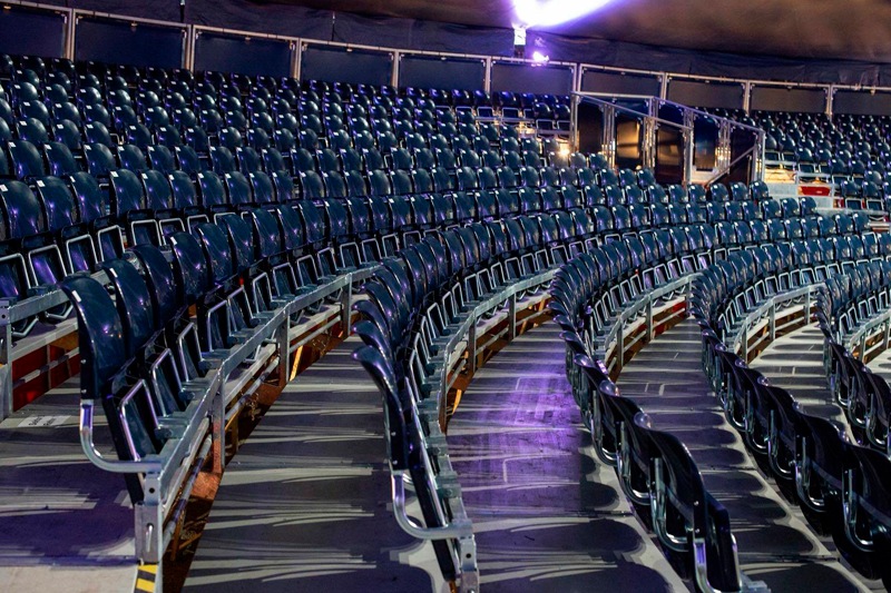 Our partners are all Italian companies with a thirty-year experience in our specific sector. We work these materials with a very careful and custom-made method: the structures must be designed taking into account the continuous assembly and dismantling to which they will be subjected. We therefore need structures made of light, safe materials, easy to handle and able to bear heavy loads. The light seats made in PP and PV are mounted on frames and in turn on platforms of a length that can be carried by hand. The wooden platforms are painted with the selected color, finished with iron profiles and hooked to the base of the staircase. We are able to produce any structural component, including for example, the parapets of the stairs accessing the tribune. All the components match perfectly in materials and colors.